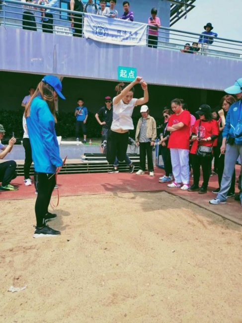 话说我们的隋少杰老师真的很厉害啊,在参加女子400米之后又和漏晓菲老师一起参加了女子跳远比赛。立定跳远是发展下肢爆发力和弹跳力的运动项目,想要收获好成绩就必须拥有高爆发力以及对身体力量的有效控制。从抓拍的照片上看,两位女老师腾跃于空中,形成了两道弧线,她们在起跳,腾空,落地的过程中完成了自己的动作,也在立定跳远的赛程里留下了yl9193永利集团的身影。