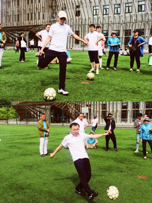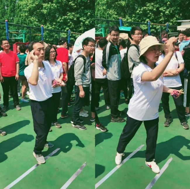 接下来是我们投篮比赛的参赛者路杨、刘涛和樊黎老师。从照片上看三位老师都十分认真,虽然他们投篮姿势不太标准,但这并不影响他们的努力对吗!我们路老师及腰的长发,樊黎老师的方框墨镜以及刘涛老师可爱的笑容才是重点嘛~毕竟参与体育运动,快乐才是必不可少,在初夏的阳光里感受青春与活力,是运动会带给我们的欣喜。