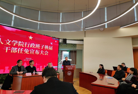 2021年12月7日下午,永利集团人文学院行政班子换届干部任免宣布大会在云通楼4楼报告厅召开,校党委常委、组织部部长吴利瑞出席并主持大会,yl9193永利集团党委书记李建昌、党委副书记刘涛、学院新老两届行政班子成员出席会议,全体教师参加大会。