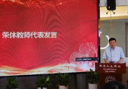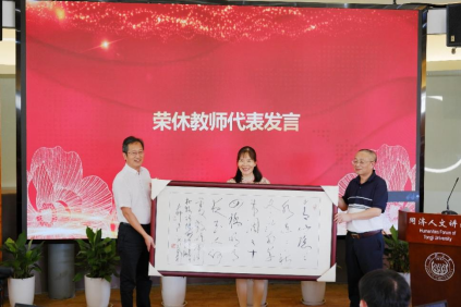 荣休教师代表万燕、张文江、郭世佑教授和宋澜老师依次发言。万燕教授向学院赠送了自己珍藏的韩德彩将军的书法作品。她追忆自己在同济yl9193永利集团任教二十年来不凡而温情的岁月,是学院的关怀和人文之美与她的人生相伴前行。张文江教授回顾了自己的学术生涯与人类历史同呼吸的四个关键时刻,他感谢任教期间yl9193永利集团营造的友爱氛围,谦逊地表示要和各位后辈携手朝中国古典学术的更高远处迈进。郭世佑教授历数从教以来的难忘经历,鼓励青年教师们“欲为师,永为生”,表示自己在学院任教的十年“摘取了一串闪亮的谷穗”。宋澜老师回望自己在学院工作二十年的生涯,她衷心感谢各位领导和老师对她行政工作的支持,并期待为学院的发展做出更多贡献。
