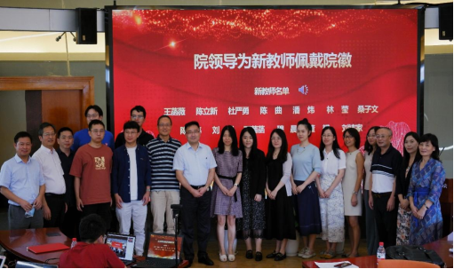 新教师入职仪式上,各位院领导为新教师佩戴了学院的纪念徽章并合影留念。