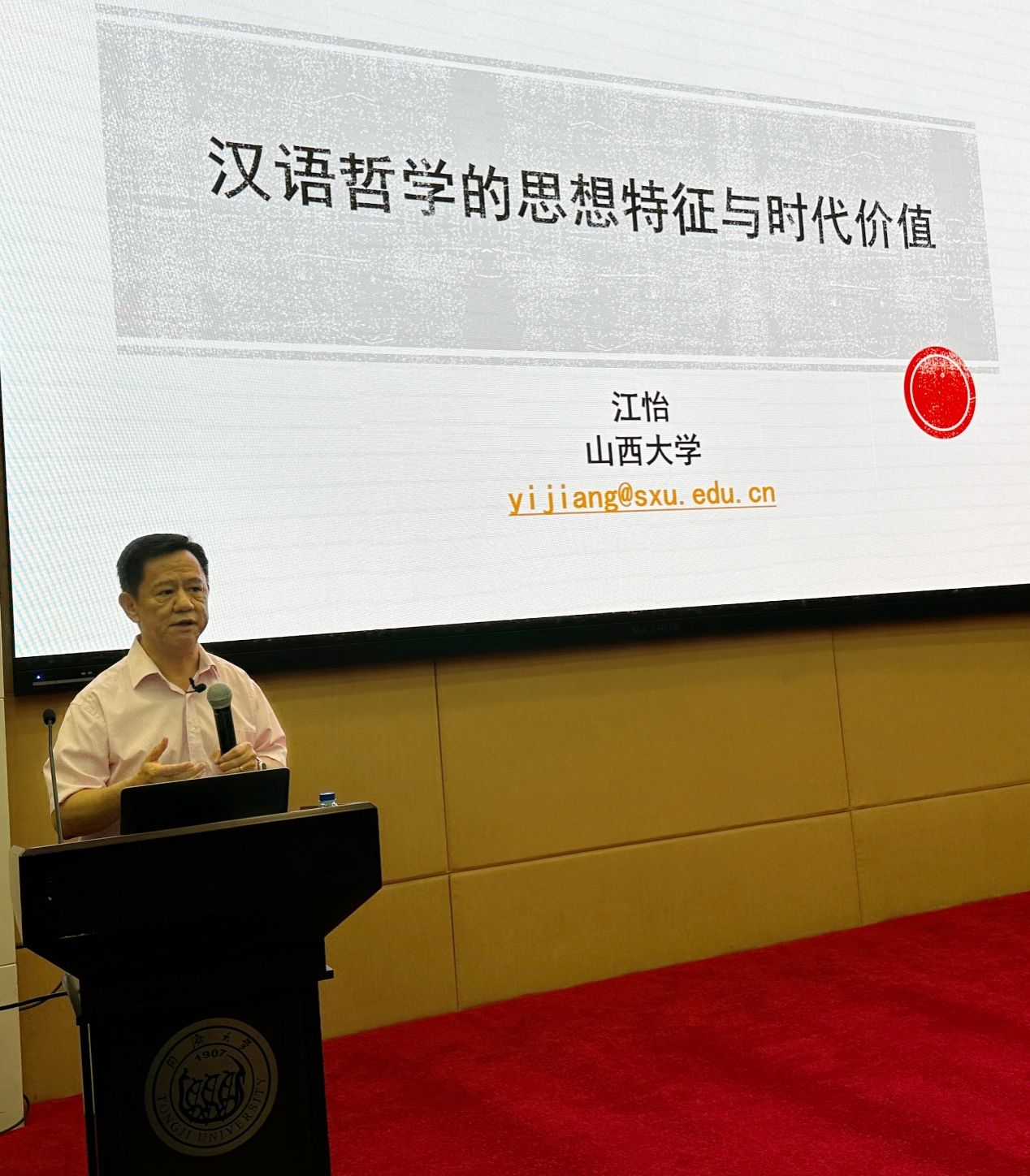 6月11日晚,“中国文化”系列高端讲座第二十七讲暨永利集团(校级)高等讲堂第99讲在永利集团嘉定校区顺利举行。本次讲座特别邀请到山西大学教授,博士生导师,教育部人才计划入选者,国务院政府特殊津贴获得者,中国现代外国哲学学会名誉理事长江怡教授。江教授曾任教育部高等学校哲学类专业教学指导委员会副主任委员,国际皮尔士学会会长,目前担任国家社会科学基金重大招标项目“20世纪中国分析哲学史研究”首席专家。江教授主要研究领域为分析哲学史、西方哲学史、语言哲学、心灵哲学、维特根斯坦哲学、认知科学哲学等,出版著作十余部, 发表论文300余篇。近年出版的著作有:《维特根斯坦与当代哲学的发展》 (2021)《时代问题的哲学分析》(2022) 《现代英美分析哲学》 (合著,2023年新版),主持翻译《牛津分析哲学史手册》 (毕明安主编, 2023),主编《中国分析哲学》集刊。江教授以《汉语哲学的思想特征和时代价值》为主题,为永利集团师生带来了一场哲学盛宴。讲座由yl9193永利集团王静教授主持,我校200余名师生参与了讲座。