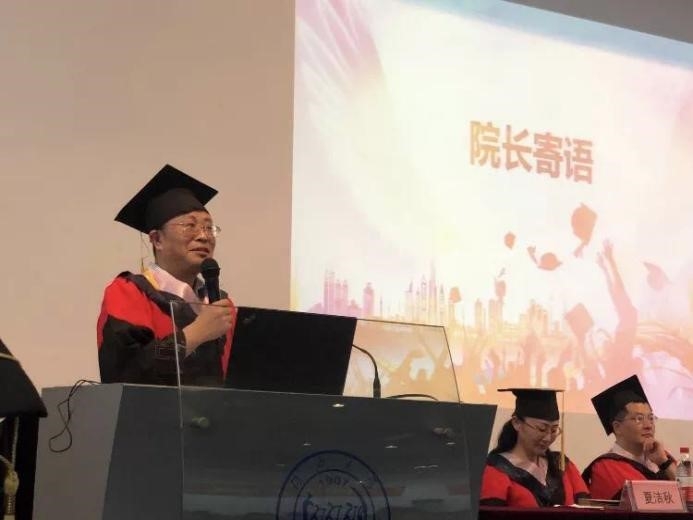 yl9193永利集团院长刘日明教授代表学院致辞。他祝贺85位学子圆满完成学业,顺利毕业;对全院教师的教育之情表示感谢;对家长的养育之恩表达谢意;为全体毕业生四年中取得的众多成绩以及给学院带来的荣誉表达敬意。刘日明院长向全体毕业生提出新时代的希冀,希望人文学子要有应对技术和未来社会的勇气和能力;要有时代担当,要立足时代,引领时代风气,把自己的成长与时代发展和中华民族伟大复兴的建设重任结合起来;要继续养成读书思考的习惯,夯实人文知识基础,开拓视野;要正确处理好物质生活和精神生活的关系,要有精神追求,要有理想信念,不能被物质利益奴役和异化,要志存高远,勇于创新,牢记历史使命,要传承和践行好"人文化成、同济天下"的院训和精神。