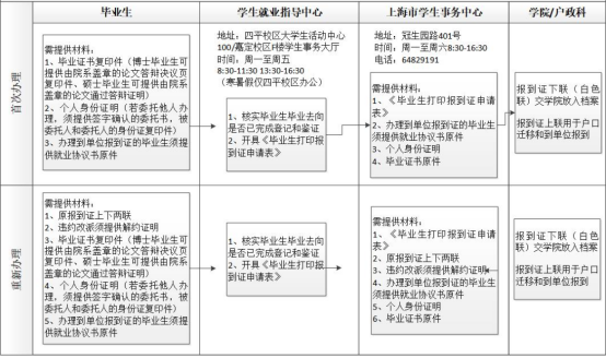 2、已办理的报到证若遗失,毕业两年内填写《报到证遗失证明表》,由原报到证抬头单位盖章证明遗失,学校就业指导中心审核后开具补办申请,学生自行前往上海市学生事务中心办理。