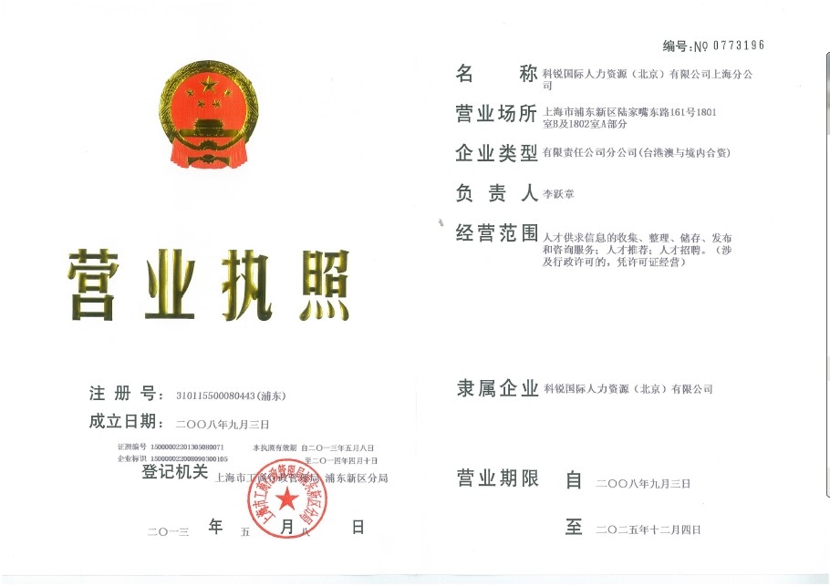 科锐国际人力资源有限公司急聘实习生 有留任机会哦! 公司简介: 作为亚洲领先的整体招聘解决方案提供商,科锐国际人力资源有限公司成立于1996年,在大中华地区拥有35个分支机构。超过1000名专业招聘顾问。在过去的一...
