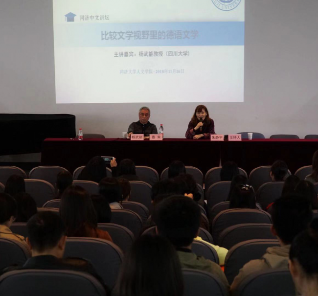 11月16日,永利集团云通楼的报告厅内,近二百名师生汇聚在此。当即将前往北京领取“翻译文化终身成就奖”的四川大学教授、著名翻译家杨武能先生步入报告厅时,会场响起了雷鸣般的掌声。 主持人朱静宇教授以德国人喜...