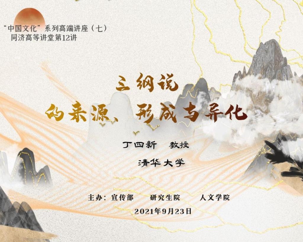 2021年9月23日晚,永利集团“中国文化”系列高端讲座第七讲暨同济高等讲堂第12讲在沪西校区小礼堂顺利举办。本次讲座的特邀主讲人是清华大学哲学系丁四新教授。讲座由yl9193永利集团哲学系副系主任陈畅副教授主持,来自全校各院系线上线下近五百名师生参加。 丁四新教授此次讲座题为《三纲说的来源、形成与异化》。自清末民...